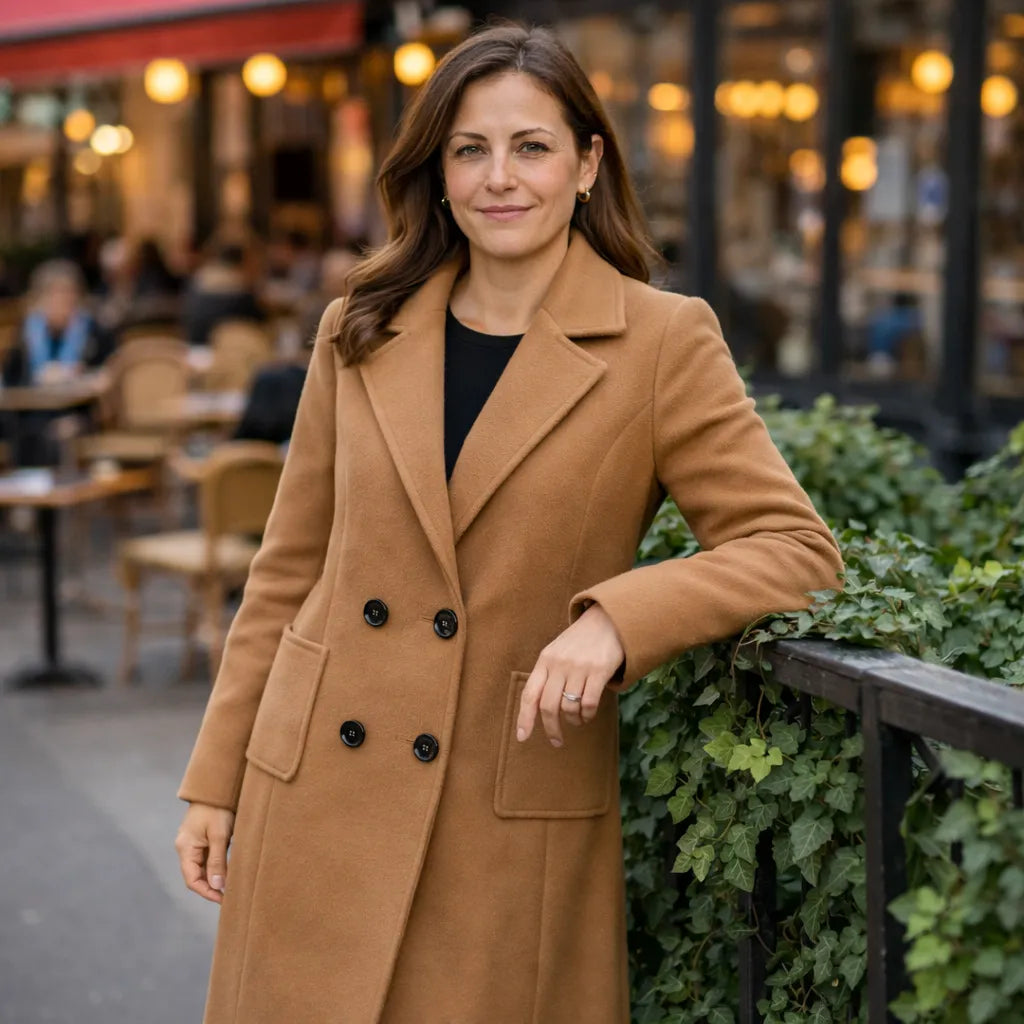 Tijdloos lang silhouet – Een verfijnde snit tot op de knie die het figuur langer laat lijken en elke winteroutfit een stijlvolle touch geeft.